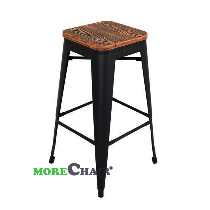 Ghế bar Tolix không tựa mặt gỗ TL-09 màu đen, sản phẩm ghế công nghiệp cao cấp phù hợp với nhà hàng, quán bar, quán cafe.