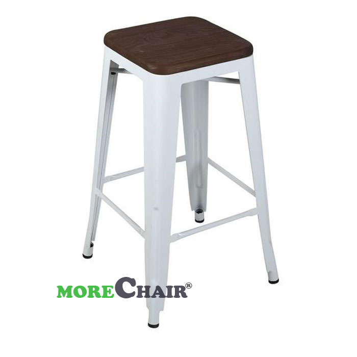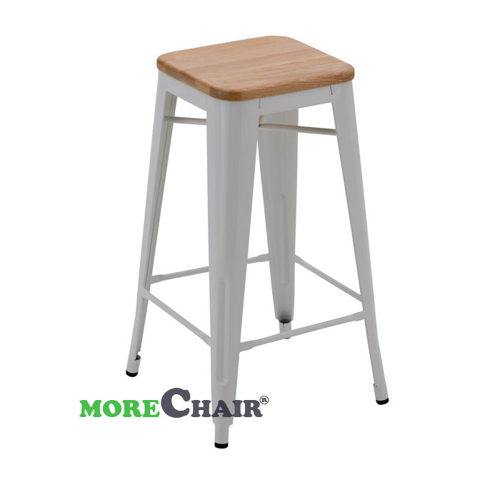 Ghế bar Tolix không tựa mặt gỗ TL-09 màu trắng, sản phẩm ghế công nghiệp cao cấp phù hợp với nhà hàng, quán bar, quán cafe.