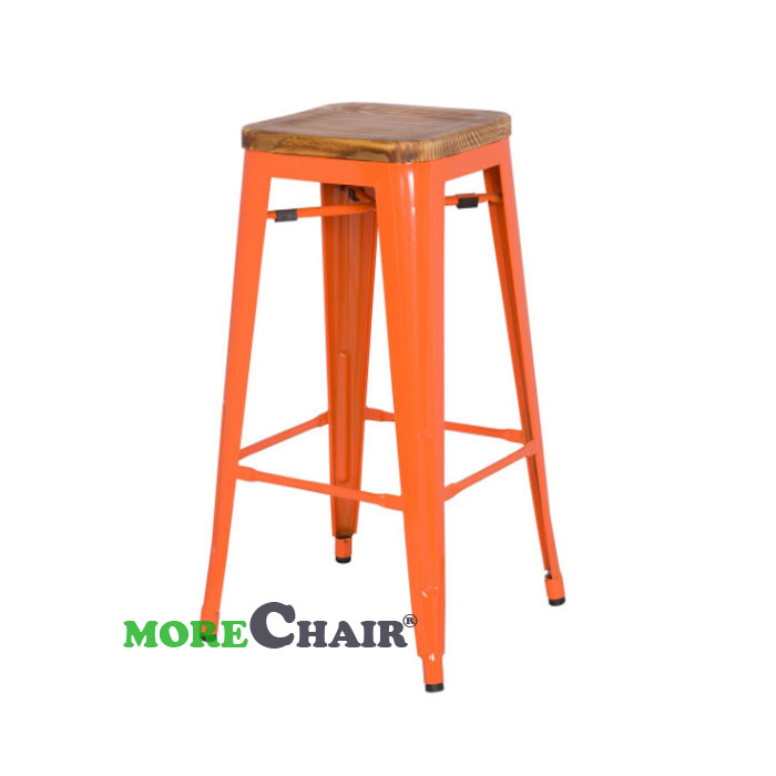 Ghế bar Tolix không tựa mặt gỗ TL-09 màu cam, sản phẩm ghế công nghiệp cao cấp phù hợp với nhà hàng, quán bar, quán cafe.
