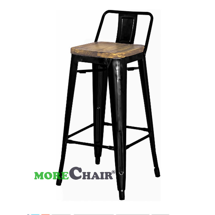 Ghế bar Tolix tựa thấp mặt gỗ TL-06 màu đen, sản phẩm ghế công nghiệp cao cấp phù hợp với nhà hàng, quán bar, quán cafe.