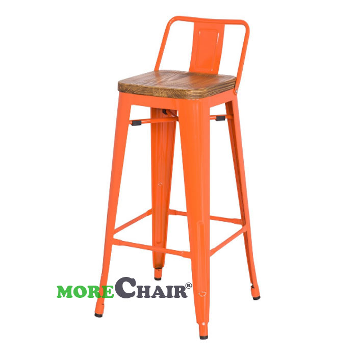Ghế bar Tolix tựa thấp mặt gỗ TL-06 màu cam, sản phẩm ghế công nghiệp cao cấp phù hợp với nhà hàng, quán bar, quán cafe.