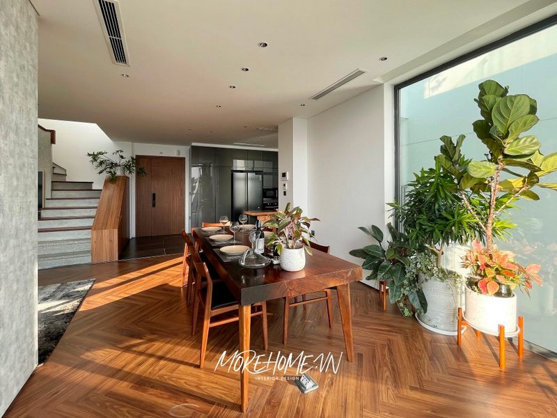 Không gian phòng ăn được thi công với nội thất hiện đại, tiện nghi và đầy đặn với phong cách thẩm mỹ.